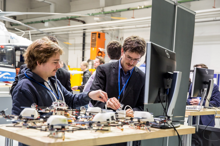 We performed a multi-MAV collision avoidance experiment. After takeoff, all MAV were placed on a colliding course. We showed the effect of our strategy where every MAV computes a collision-free trajectory by itself based only on locally available information.